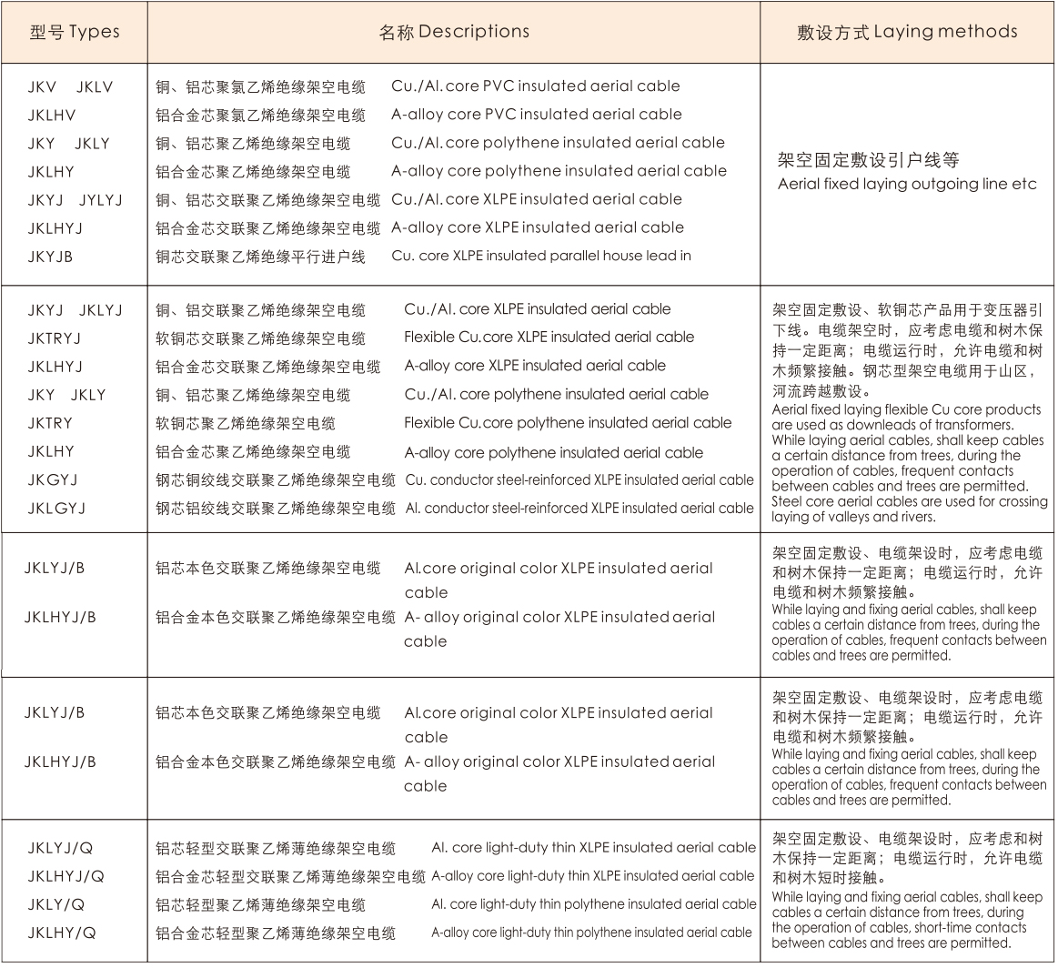 執行標準額定電壓1kV及以下架空絕緣電纜GB 12527-2008。額定電壓l0kV架空絕緣電纜GB 14049-2008。額定電壓1kV鋼芯鋁絞線芯架空絕緣電纜Q/321084KLA060。額定電壓35kV及以下架空絕緣電纜Q/321084KLA061。適用范圍本產品適用于額定電壓1-35kV架空電力線路輸配電系統。
